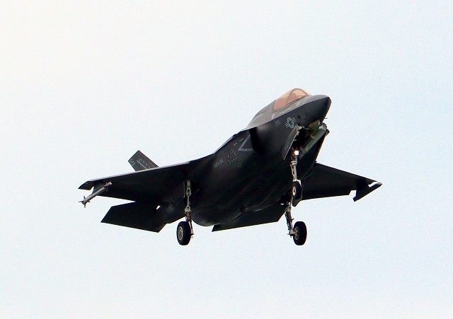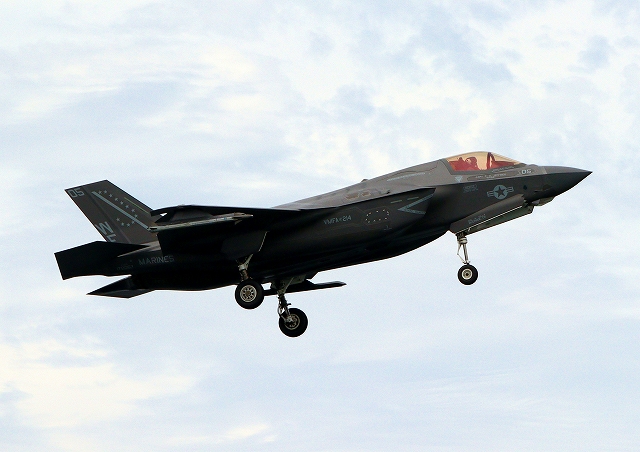 米海兵隊 F-35B ライトニングⅡ ステルス戦闘機(岩国基地)、WE、05番機が着陸 |