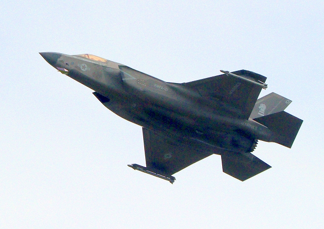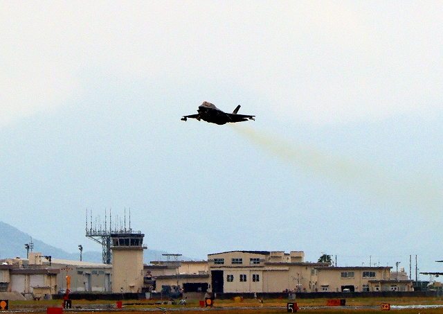 米海兵隊 F-35B ライトニングⅡ ステルス戦闘機(岩国基地)、VK、01番機が離陸 |