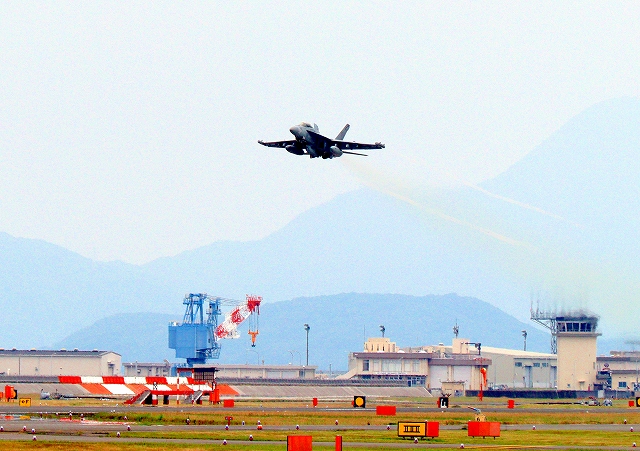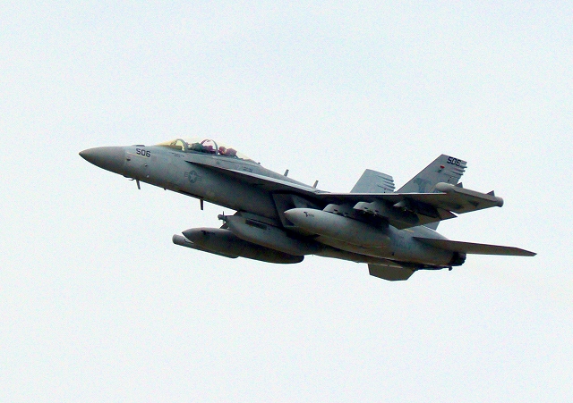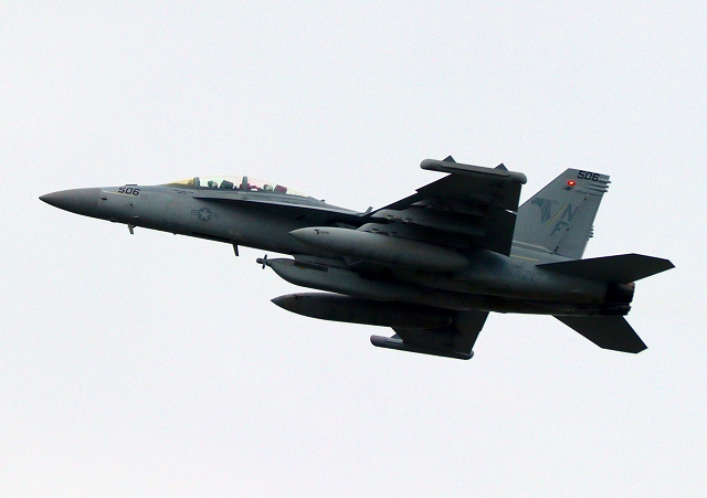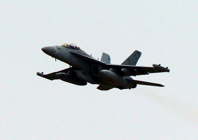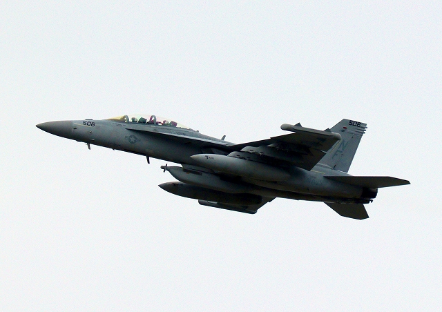 米海軍艦載機 EA-18G グラウラー 電子戦機戦闘攻撃機(岩国基地)、NF、506番機が離陸 |