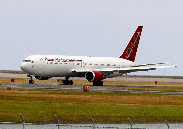 米軍チャーター民間輸送機 オムニ・エアー・インターナショナル ボーイング767 N378AXが着陸 |