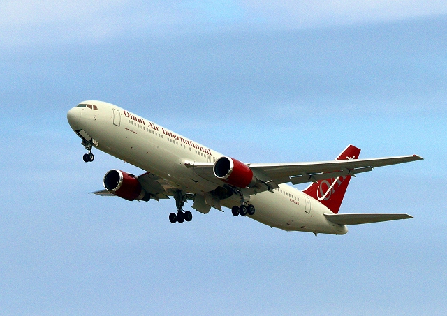 米軍チャーター民間輸送機 オムニ・エアー・インターナショナル ボーイング767 N378AXが離陸 |