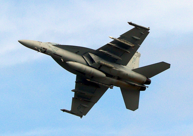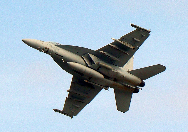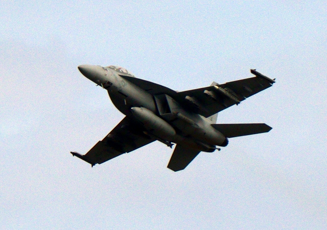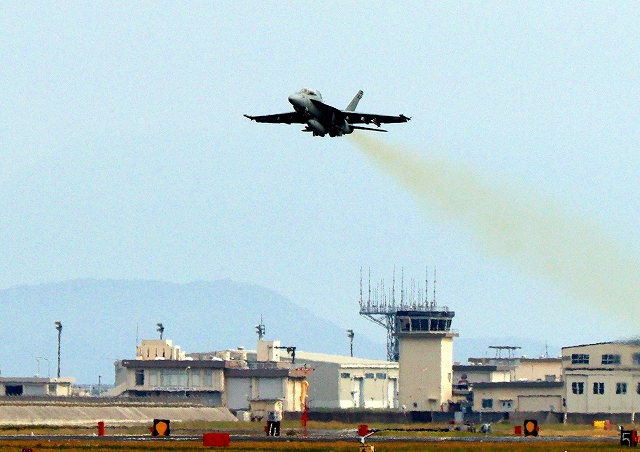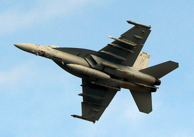 米海軍艦載機 F/A-18F スーパーホーネット 戦闘攻撃機(岩国基地)、NF、104番機が離陸 |