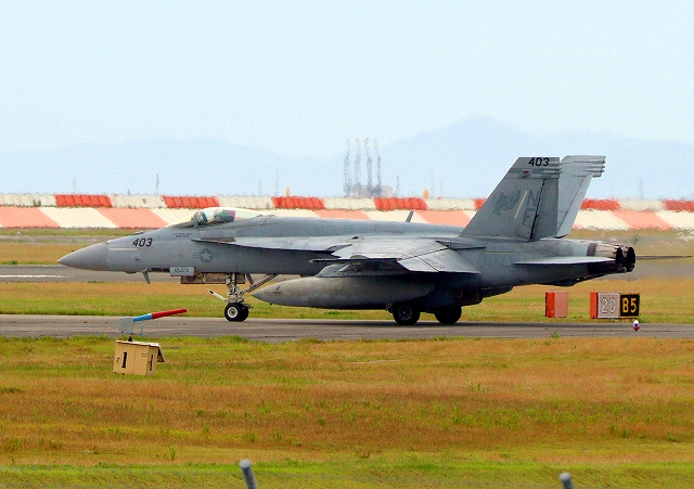 米海軍艦載機 F/A-18E スーパーホーネット 戦闘攻撃機(岩国基地)、NF、403番機が出てきました。 |