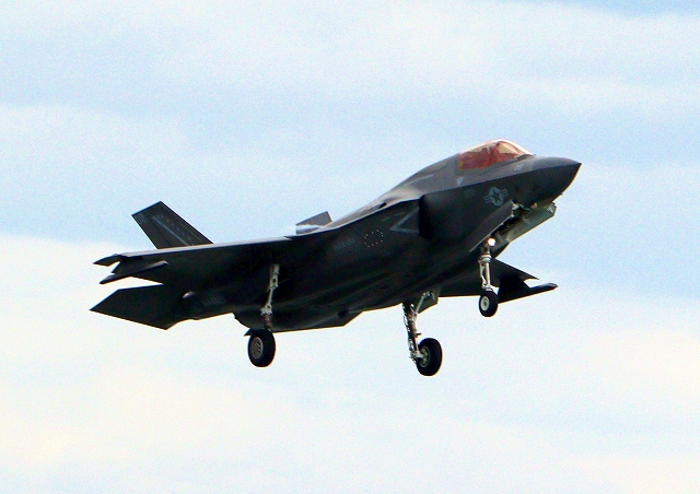 米海兵隊 F-35B ライトニングⅡ ステルス戦闘機(岩国基地)、WE、08番機が着陸 |