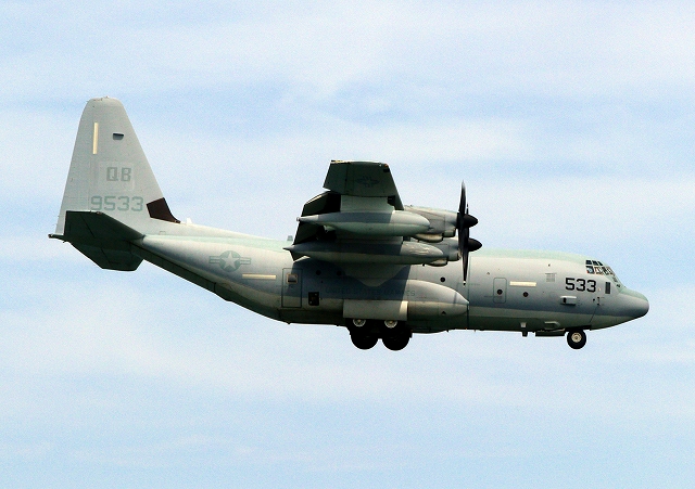 米海兵隊 KC-130J 空中給油機 スーパーハーキュリーズ(岩国基地)、QB 9533番機 |