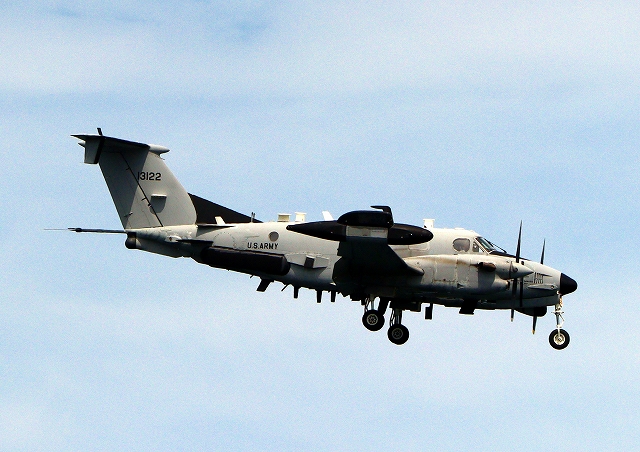 米陸軍 RC-12X 電子情報収集機 ガードレール(韓国内米軍基地)、13122番機が飛来