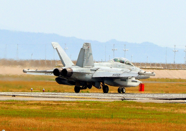 米海軍艦載機 EA-18G グラウラー 電子戦機戦闘攻撃機(岩国基地)、NF、503番機が出てきました。 |