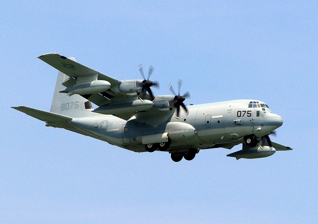 米海兵隊 KC-130J 空中給油機 スーパーハーキュリーズ(岩国基地)、QD 8075番機 |