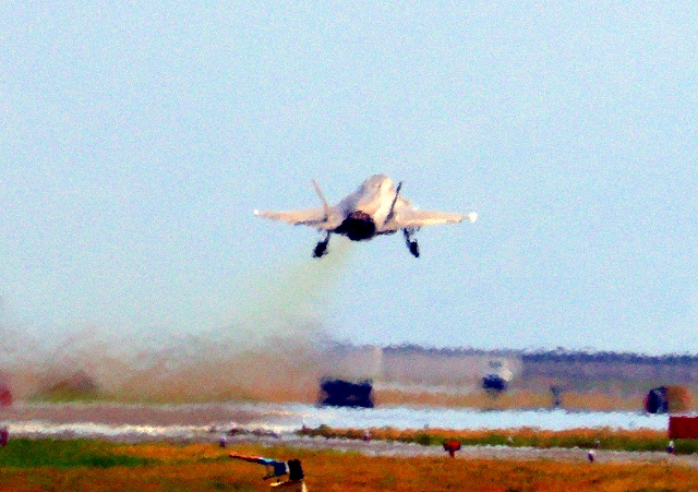 米海兵隊 F-35B ライトニングⅡ ステルス戦闘機(岩国基地)、VK、11番機が離陸 |