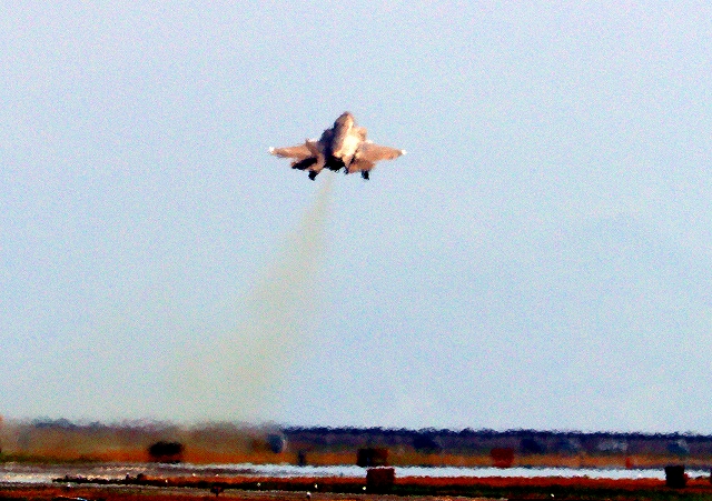 米海兵隊 F-35B ライトニングⅡ ステルス戦闘機(岩国基地)、VK、01番機が離陸 |