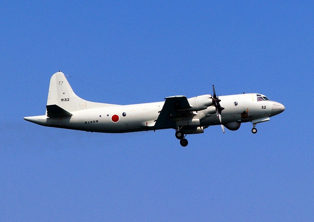 海上自衛隊 OP-3C 画像情報収集機(岩国基地)、9132番機が旋回 |