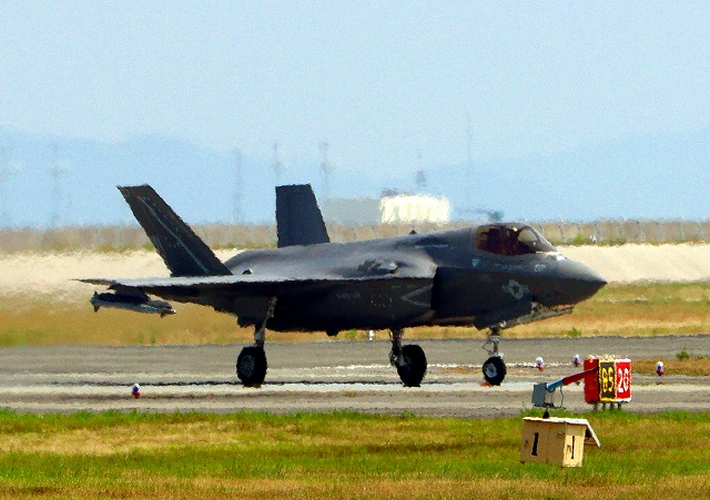米海兵隊 F-35B ライトニングⅡ ステルス戦闘機(岩国基地)、WE、08番機が着陸 |