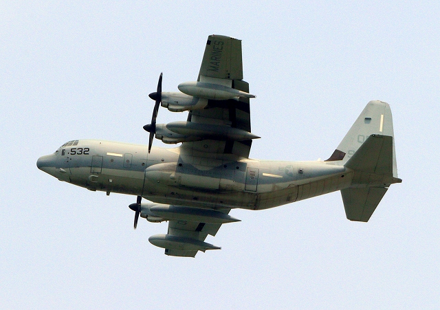 米海兵隊 KC-130J 空中給油機 スーパーハーキュリーズ(岩国基地)、QD 9532番機 |