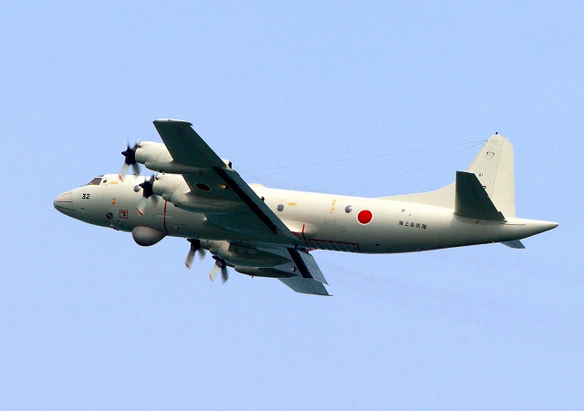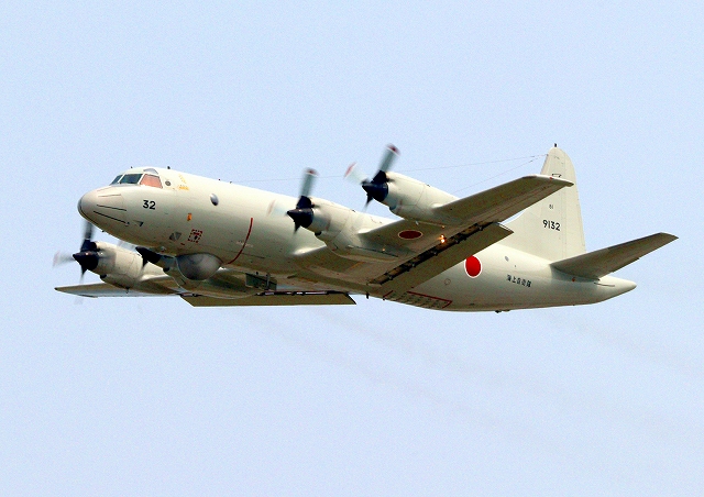 海上自衛隊 OP-3C 画像情報収集機(岩国基地)、9132番機が旋回 |