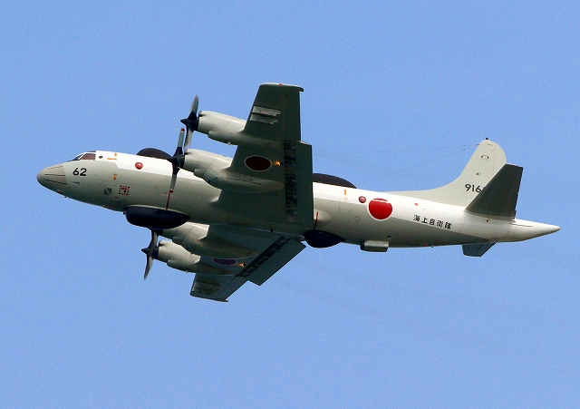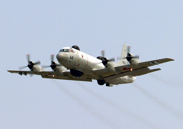 海上自衛隊 UP-3D 電子戦訓練支援機(岩国基地)、9162番機が旋回 |