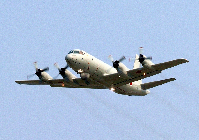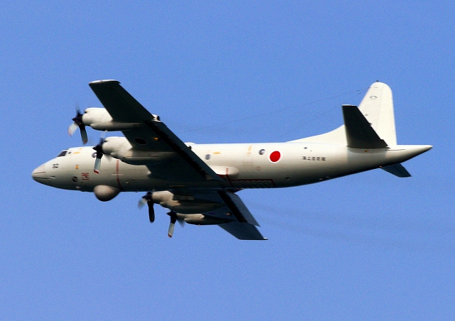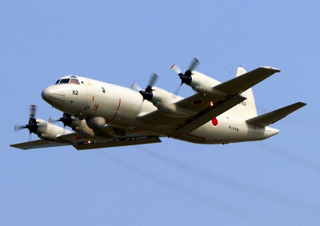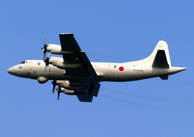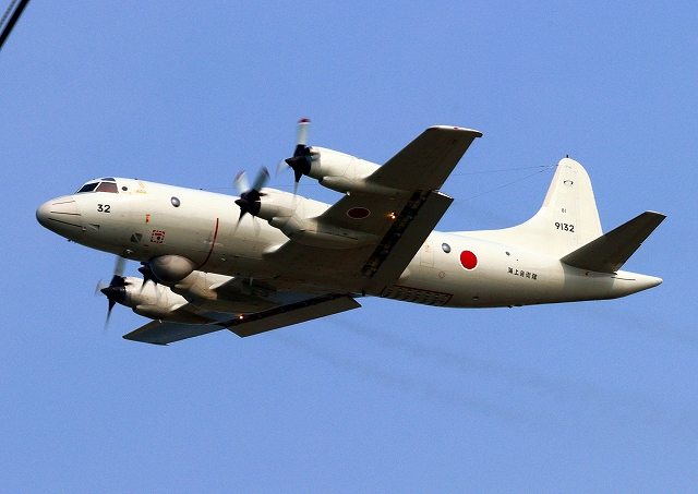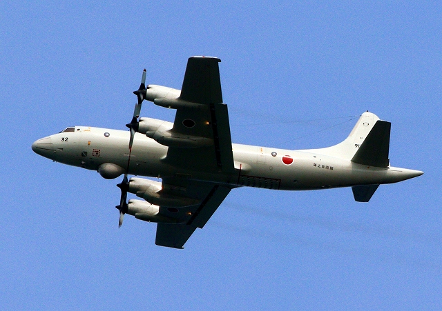 海上自衛隊 OP-3C 画像情報収集機(岩国基地)、9132番機が旋回 |