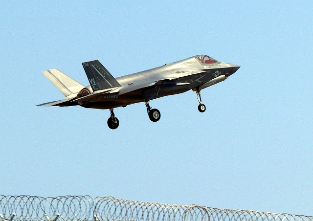 米海兵隊 F-35B ライトニングⅡ ステルス戦闘機(岩国基地)、CF、01番機が着陸 |