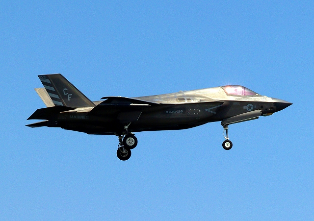 米海兵隊 F-35B ライトニングⅡ ステルス戦闘機(岩国基地)、CF、07番機が着陸 |