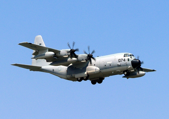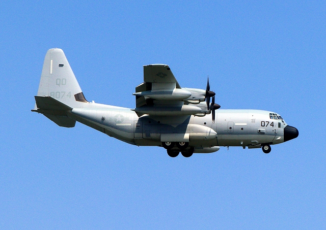米海兵隊 KC-130J 空中給油機 スーパーハーキュリーズ(岩国基地)、QD 8074番機 |