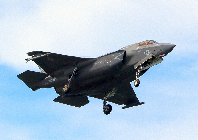 米海兵隊 F-35B ライトニングⅡ ステルス戦闘機(岩国基地)、WE、08番機が着陸 |
