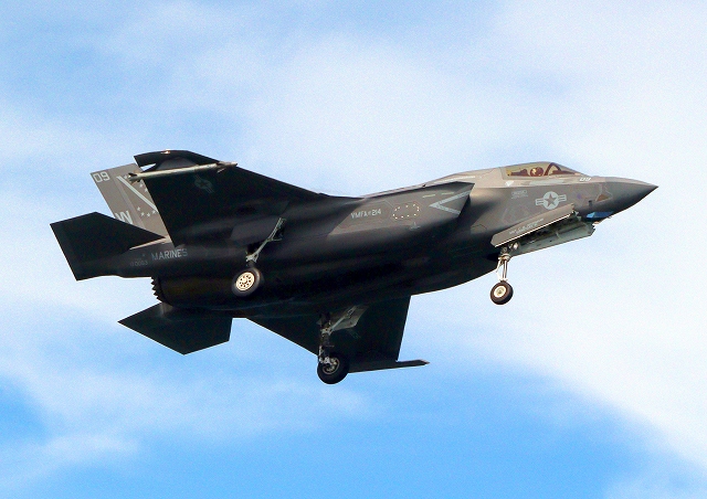 米海兵隊 F-35B ライトニングⅡ ステルス戦闘機(岩国基地)、WE、09番機が着陸 |