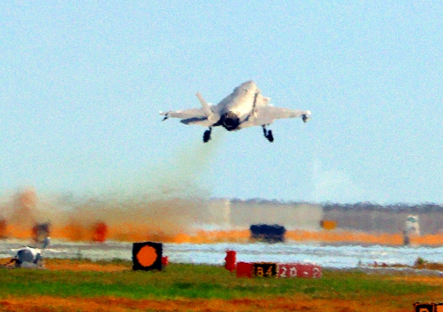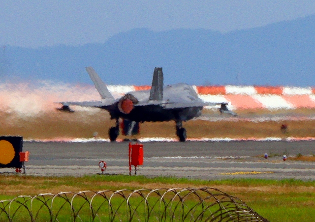 米海兵隊 F-35B ライトニングⅡ ステルス戦闘機(岩国基地)、WE、01番機が離陸 |