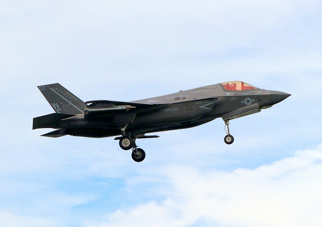 米海兵隊 F-35B ライトニングⅡ ステルス戦闘機(岩国基地)、WE、01番機が着陸 |