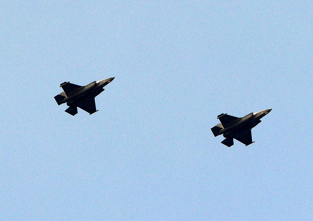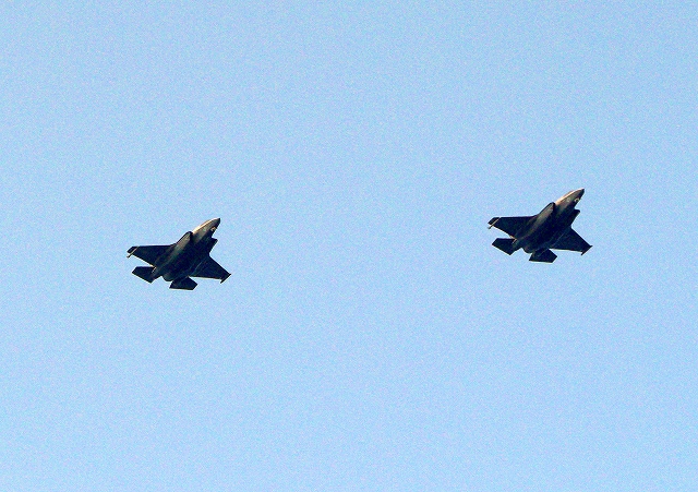 米海兵隊 F-35B ライトニングⅡ ステルス戦闘機(岩国基地)、WE、07番機、01番機が2機編隊で帰還 |