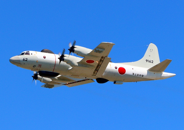 海上自衛隊 UP-3D 電子戦訓練支援機(岩国基地)、9162番機が旋回 |
