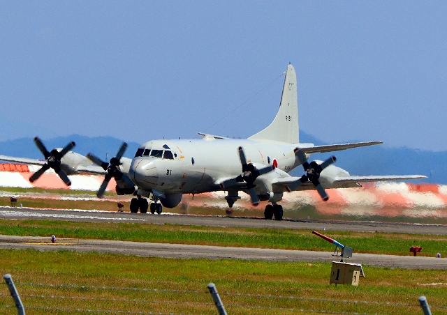 海上自衛隊 OP-3C 画像情報収集機(岩国基地)、9131番機が着陸 |
