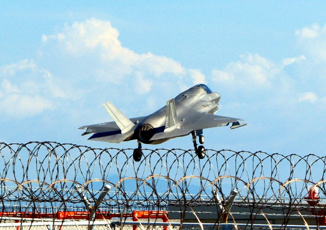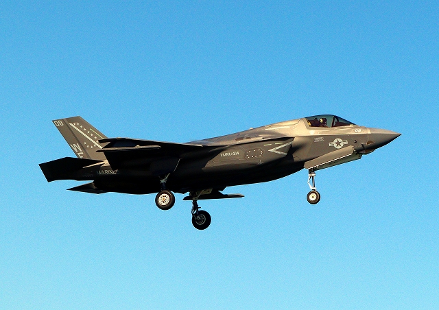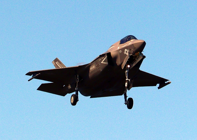 米海兵隊 F-35B ライトニングⅡ ステルス戦闘機(岩国基地)、WE、08番機が着陸