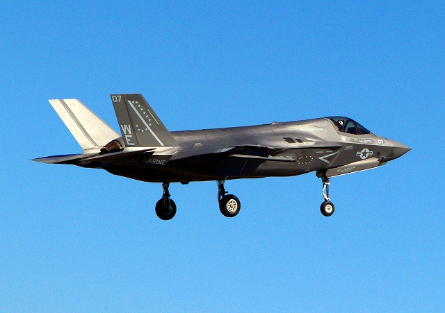 米海兵隊 F-35B ライトニングⅡ ステルス戦闘機(岩国基地)、WE、07番機が着陸