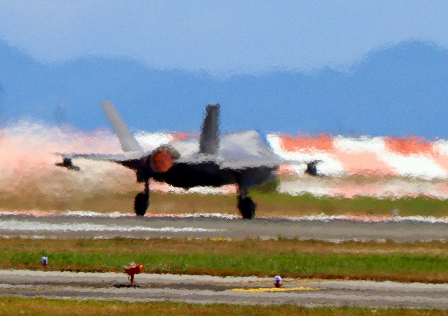 米海兵隊 F-35B ライトニングⅡ ステルス戦闘機(岩国基地)、WE、00番機が離陸 |