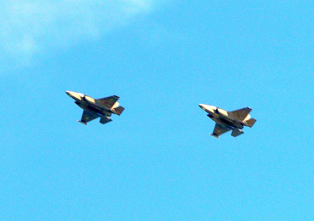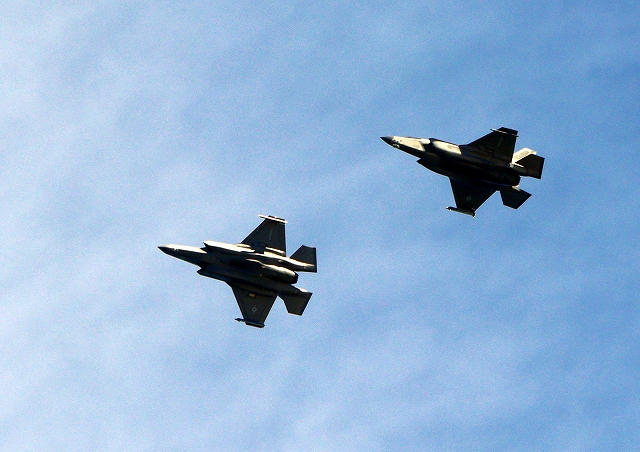 米海兵隊 F-35B ライトニングⅡ ステルス戦闘機(岩国基地)、CF、03番機、10番機が2機編隊で帰還 |