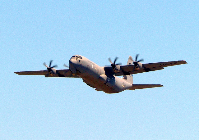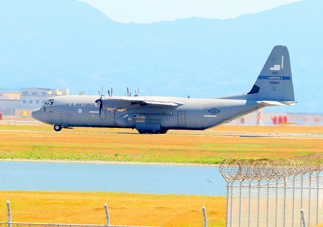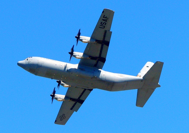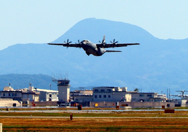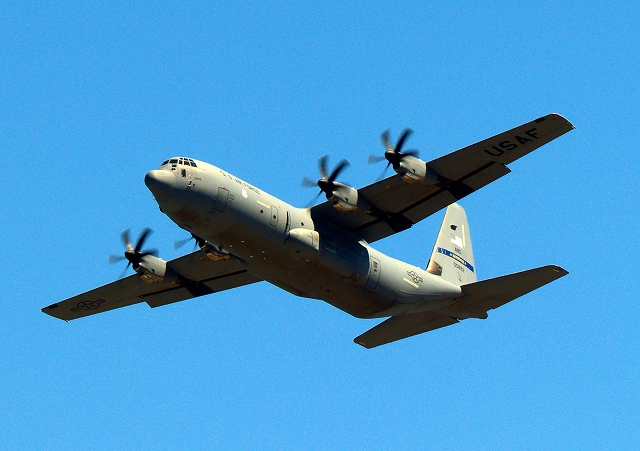 米空軍 C-130-30 輸送機 ハーキュリーズ、55897番機が離陸 |