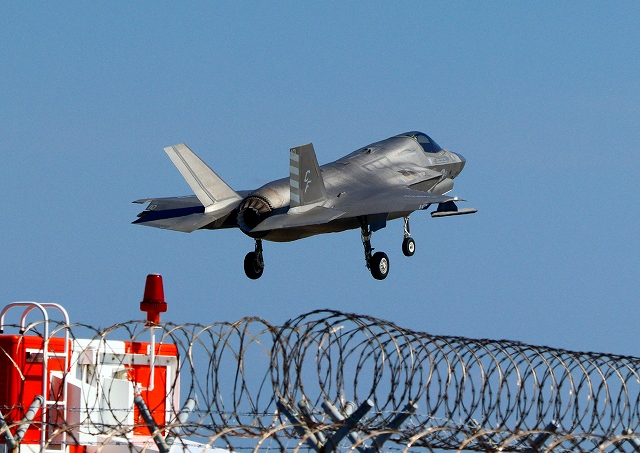 米海兵隊 F-35B ライトニングⅡ ステルス戦闘機(岩国基地)、CF、05番機が着陸 |