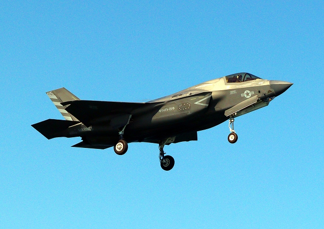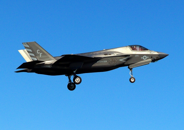 米海兵隊 F-35B ライトニングⅡ ステルス戦闘機(岩国基地)、CF、10番機が着陸 |