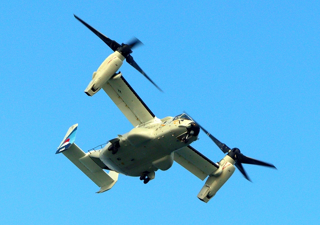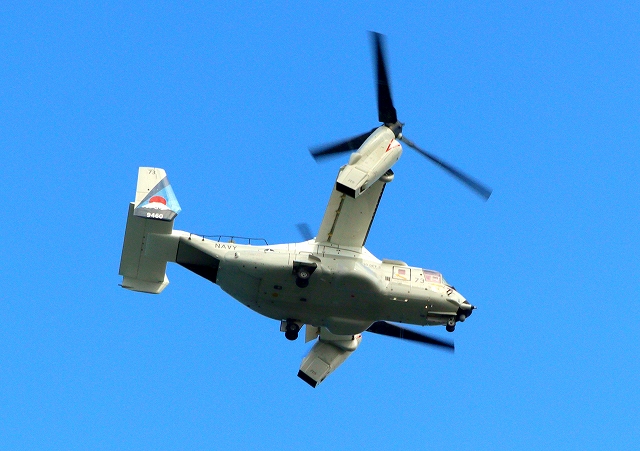 米海軍艦載機 CMV-22B オスプレイ 輸送機(岩国基地)、73-9460番機が旋回 |