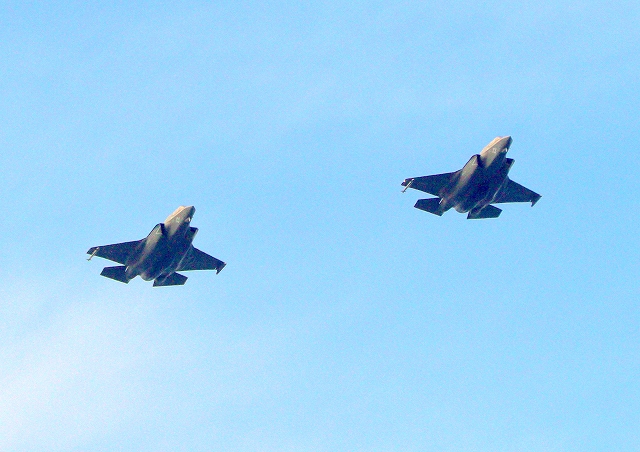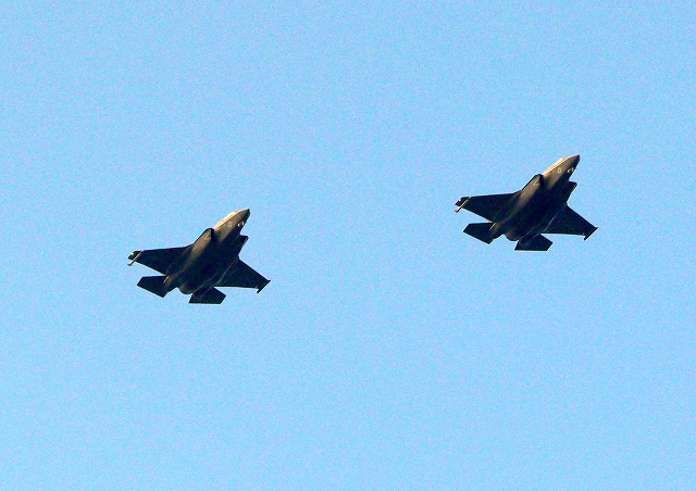 米海兵隊 F-35B ライトニングⅡ ステルス戦闘機(岩国基地)、WE、03番機、08番機が2機編隊で帰還 |
