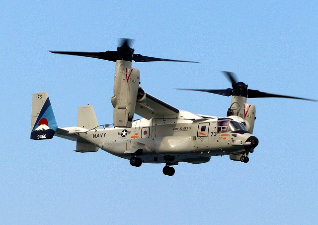 米海軍艦載機 CMV-22B オスプレイ 輸送機(岩国基地)、73-9460番機が旋回 |