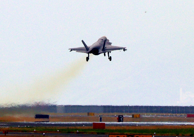 米海兵隊 F-35B ライトニングⅡ ステルス戦闘機(岩国基地)、WE、09番機が離陸 |
