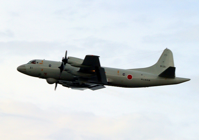 海上自衛隊 OP-3C 画像情報収集機(岩国基地)、9131番が旋回機 |
