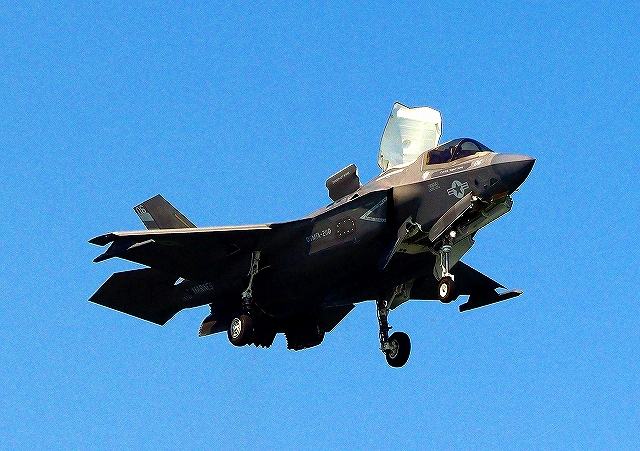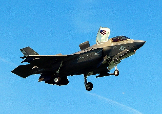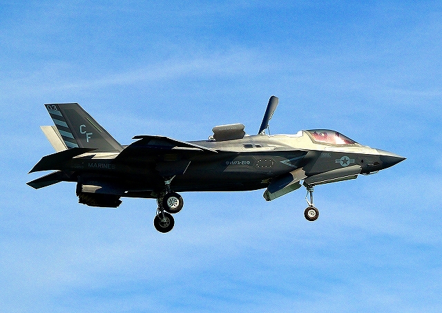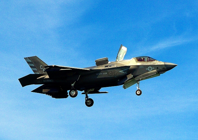 米海兵隊 F-35B ライトニングⅡ ステルス戦闘機(岩国基地)、CF、03番機が短距離着陸 |