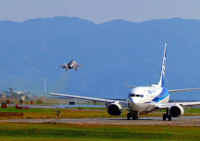 3912ー8、2025年8月18日(月)F-35B ライトニングⅡ ステルス戦闘機 CF 06番機、03番機 離陸、全日空旅客機定期便 離陸(71)~(80)