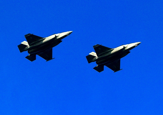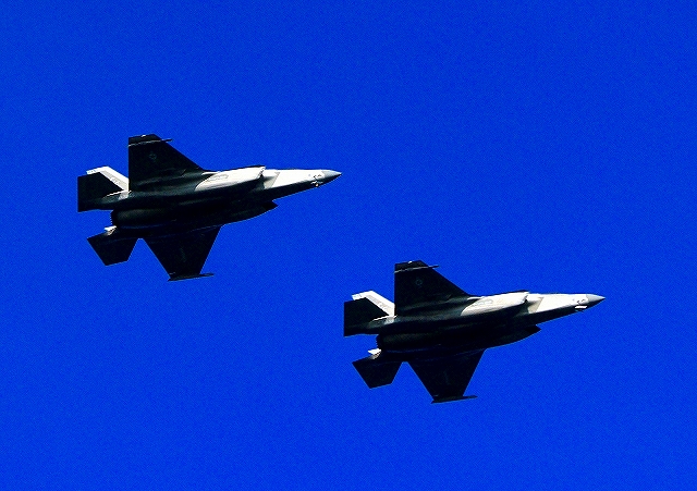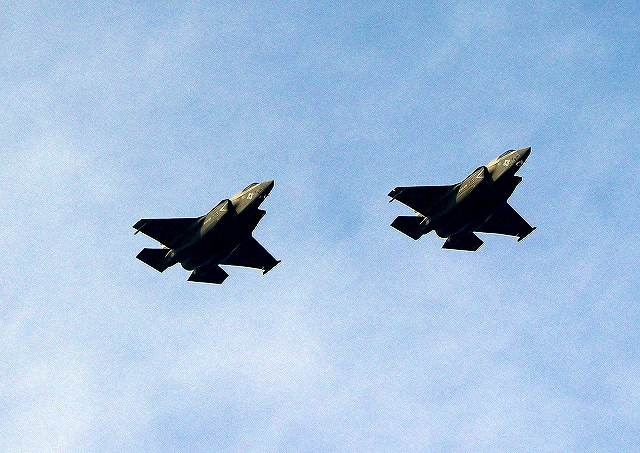 米海兵隊 F-35B ライトニングⅡ ステルス戦闘機(岩国基地)、CF、06番機、03番機が2機編隊で帰還 |