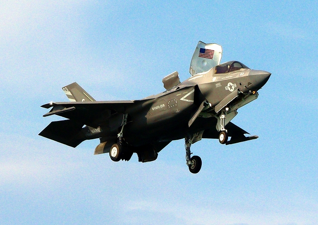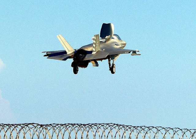 米海兵隊 F-35B ライトニングⅡ ステルス戦闘機(岩国基地)、CF、03番機が短距離着陸 |