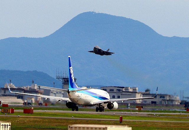 米海兵隊 F-35B ライトニングⅡ ステルス戦闘機(岩国基地)、WE、02番機が離陸 |