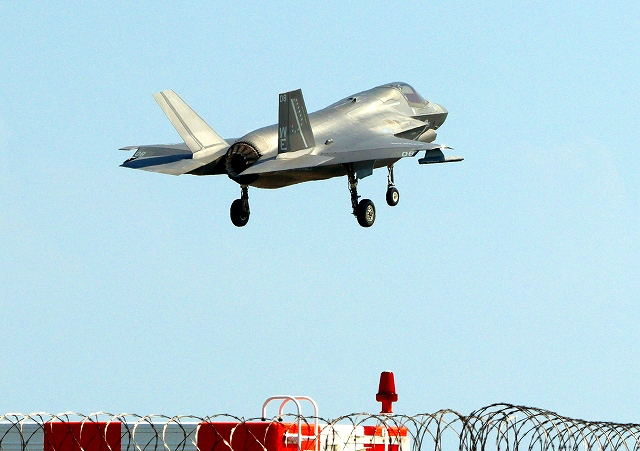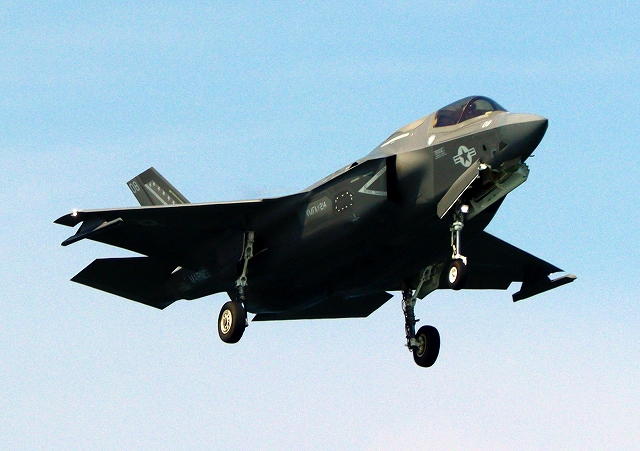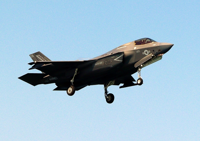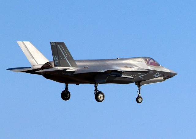 米海兵隊 F-35B ライトニングⅡ ステルス戦闘機(岩国基地)、WE、08番機が着陸 |