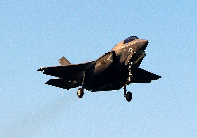 米海兵隊 F-35B ライトニングⅡ ステルス戦闘機(岩国基地)、DT、25番機が着陸 |