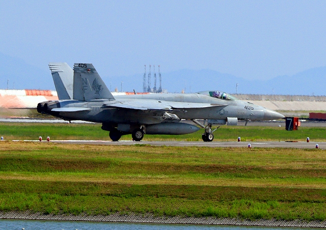 米海軍艦載機 F/A-18E スーパーホーネット 戦闘攻撃機(岩国基地)、NF、405番機 |